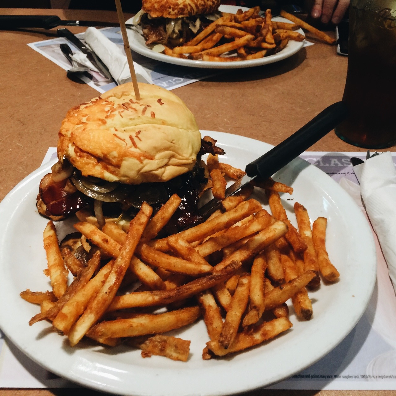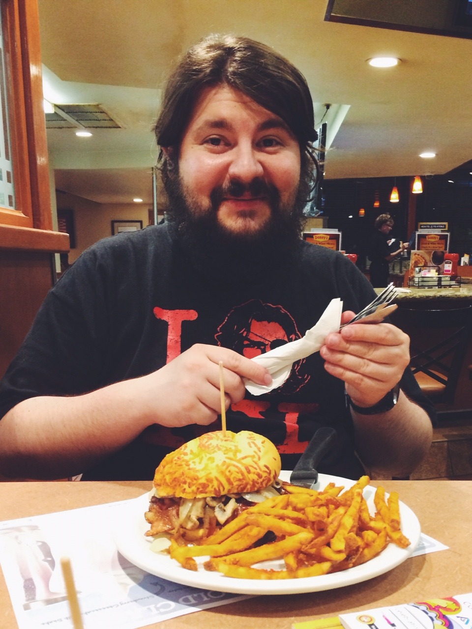 wir wohnen wirklich direkt neben dem bacon festival/fairground – bin schon gespannt wie es hier bei tageslicht ausschaut! nachdem wir eingecheckt haben, ging es jedenfalls zu denny’s auf den ersten burger, der DER HAMMER war! ebefalls der eistee, den ich schon 2011 so geliebt habe (vor allem die refills).