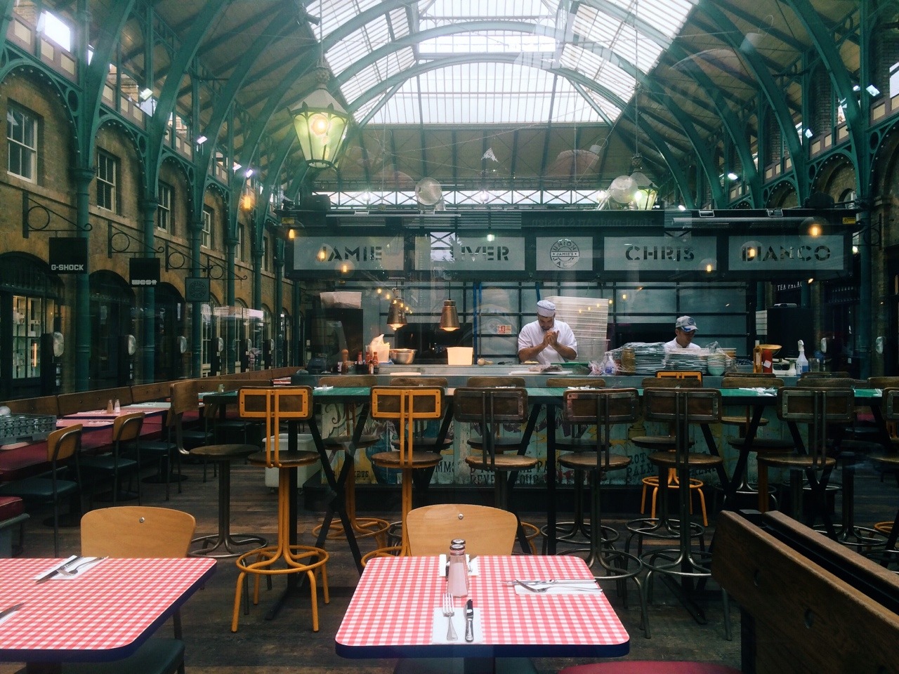 in der nähe befand sich das italienische restaurant vom jamie oliver & ICH WOLLTE JETZT ENDLICH IN EINEN OLIVER LADEN! daniels chef hat uns eigentlich abgeraten, das restaurant hätte keine guten kritiken, aber wir wollten es trotzdem probieren. auf dem weg dorthin kamen wir bei einem kiehl’s laden vorbei, in dem daniel nach einem neuen bartöl fragen wollte. die verkäuferin war etwsd verdutzt & empfahl uns doch eher gegenüber mal bei murdocks zu fragen. wir drehen uns um & daniel gehen wirklich sichtbar die glühbirnen auf: das ist der barbier, zu dem er ohnehin wollte! er hat noch einen termin bekommen & sein barbier hat uns dann auch noch einen pub/restaurant in “unserem” viertel empfohlen. also wieder kein jamie, aber das war auch nicht so tragisch: seltsamerweise war die schlange beim restaurant daneben viel, viel länger als bei “jamies italian”.