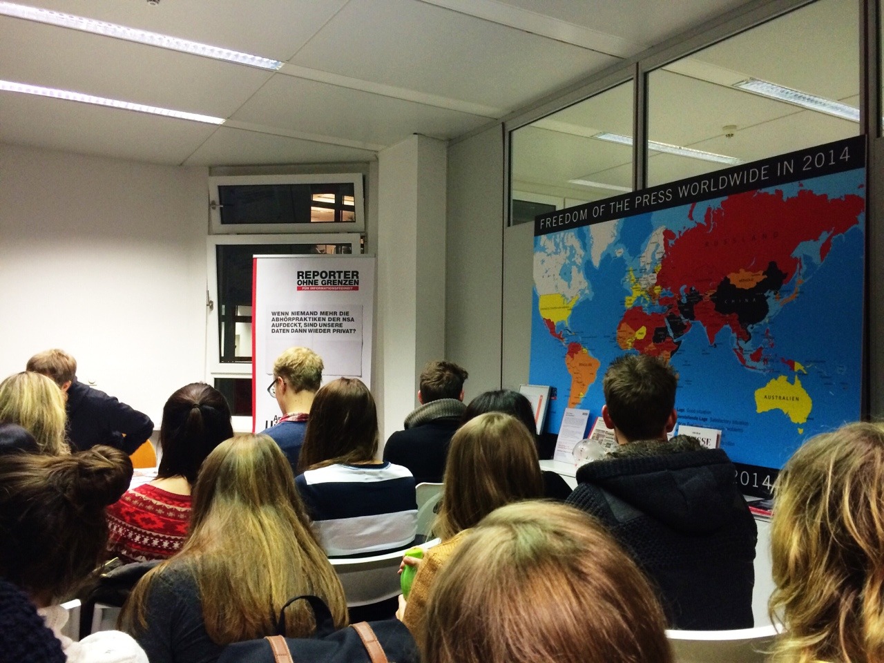 Der nächste und letzte Termin führt uns in die Friedrichstraße zu Reporter ohne Grenzen. Am Vortag haben wir bei DDB ja über deren Kampagne “Whistles for Whistleblowers” erfahren. Heute lernen wir die Sicht des Kundens kennen. Wir sind ziemlich beeindruckt von dem Engagement des NGOs und auch von dem Vortragenden.