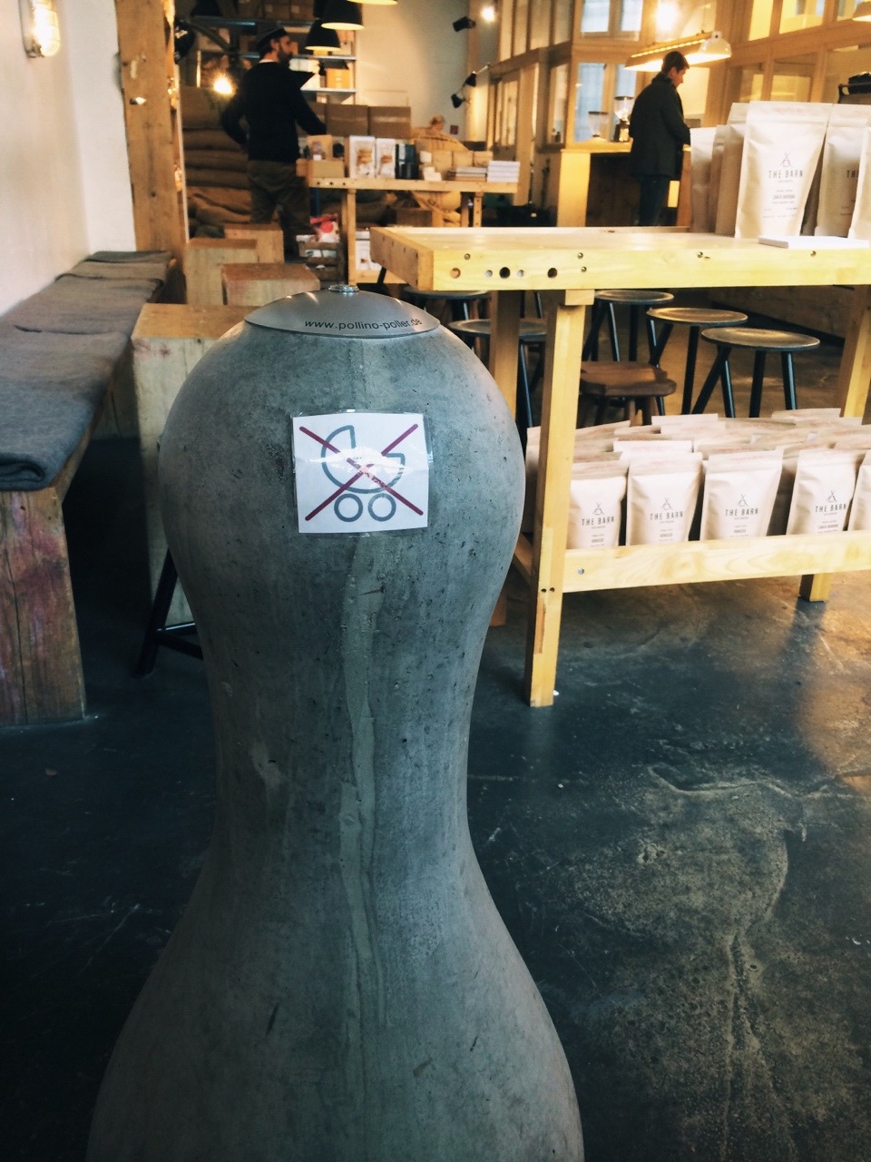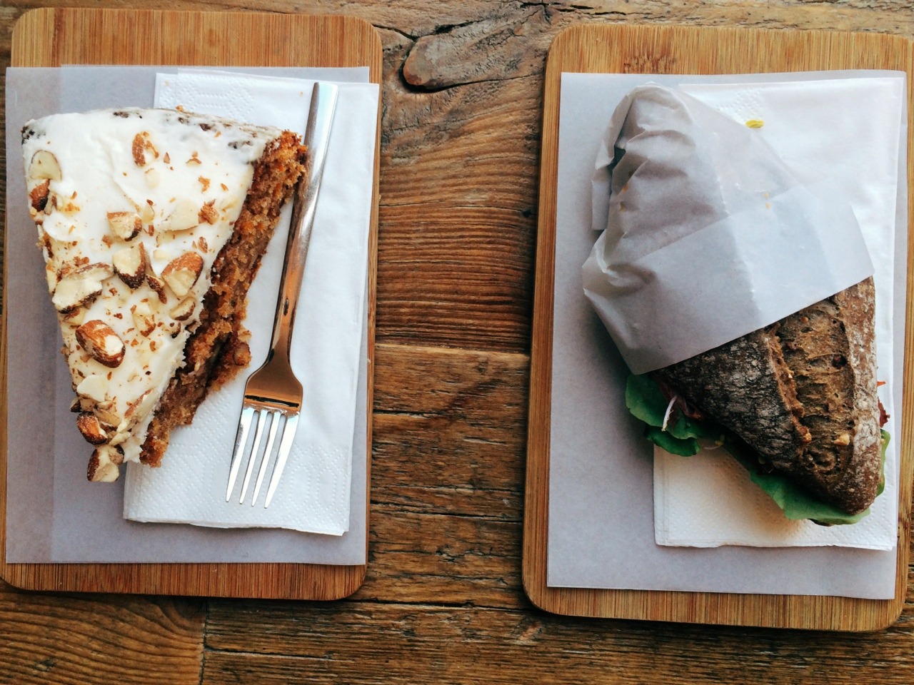 Wir starten den Tag bei “The Barn” in der Schönhauser Allee. Es sind keine Kinderwägen und Laptops erlaubt und theoretisch gibt es kein WC. Wir trinken herrlichen Kaffee aus der Chemex (eine “Cup of Excellence” Sorte, die wir such für zuhause kaufen) und essen ein Pastrami Sandwich sowie einen der besten Karottenkuchen, die ich je gegessen habe.