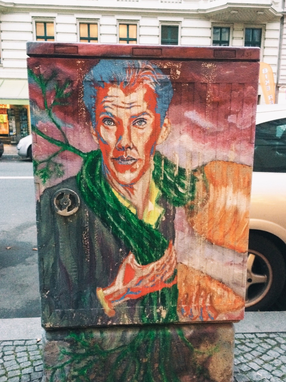 Es geht weiter die Friedrichsstraße entlang. Wir schnabulieren einen Flammkuchen in einem Bioladen und ich danke dem Karma, dass es gut ist zu mir: Der keifenden Verkäuferin platzt die Pfeffermühle und auf der ganzen Theke verteilen sich kleine schwarze Körner. Tja, wäre sie mal netter gewesen!