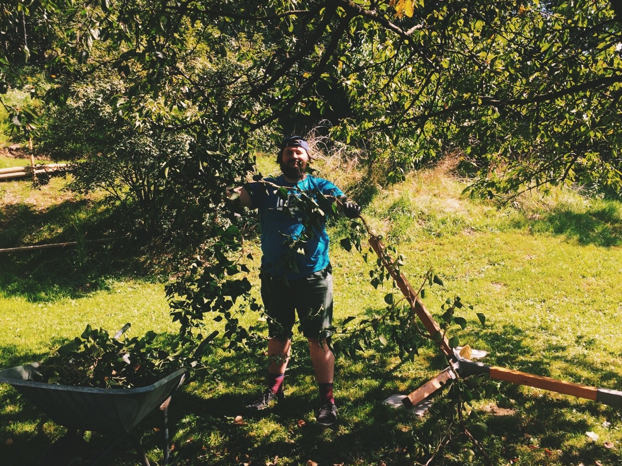 Wir starten in den Tag mit einem Frühstücksei und erfrischenden Orangensaft. Knurr!!! Daniel zieht danach in den Kampf gegen Efeu und befreit den Kirschbaum von seinem ungeliebten Mitbewohner. Stundenlang zerrt und schneidet er Ranken aus den Ästen – wir vergessen leider ein Vorher-Foto zu machen. :/ Aber C. ist bei ihrem Besuch ganz baff, was Daniel geschafft hat.